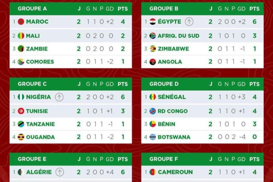 La deuxième journée de la phase de groupes de la Coupe d’Afrique des Nations 2025 s’est achevée ce 28 décembre 2025 et a commencé à dessiner les grandes tendances de la compétition. Certaines sélections ont déjà validé leur qualification pour les huitièmes de finale, tandis que d’autres se retrouvent en grande difficulté avant la troisième et dernière journée. Dans le groupe A, le Maroc a été accroché par le Mali (1-1). Les Marocains restent en tête avec 4 points mais ne sont pas encore assurés de se qualifier. La Zambie et les......