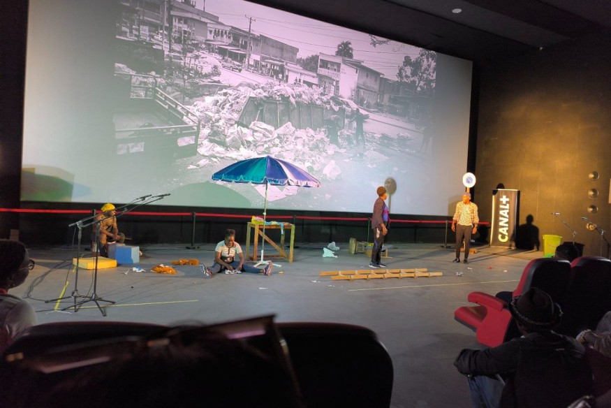 Dans le brouhaha des klaxons et des bruits de moteur, une voix, celle de Tina Ekambi nous plonge très vite dans la pièce. Une entrée à pas marqués, rythmée par le batteur (pas) fou joué par le virtuose Fred Anthony Doumbe. La pièce se déroule à Douala ville cosmopolite du pays, non, du Continent Camerounais. Ici on crie son désarroi face au désordre urbain, à l'insalubrité, à l'incivisme; les personnages se livrent à coeur joie dans une auto critique de leurs responsabilités. Non sans pointer du doigt toutes les parties elles aussi responsables de part le laxisme......