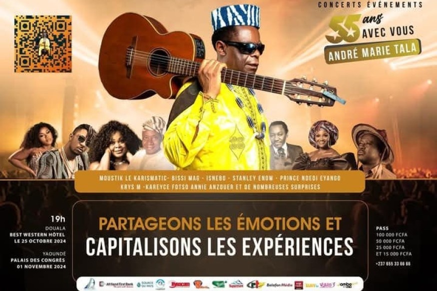 Le 25 octobre 2024, Tala André Marie, icône de la musique camerounaise, a célébré ses 55 ans de carrière lors d'un concert mémorable au Best Western Hôtel de Douala. Cet événement, qui a attiré de nombreux fans, témoigne de l’impact durable de l’artiste du genre Bend skin, Tchamassi sur la scène musicale internationale. Au cours de cette soirée, Tala André Marie a revisité ses titres à succès (Sikati, Mother Africa, Je vais à Yaoundé, Binam, etc.), entraînant le public dans un voyage musical riche en émotions. La performance a......